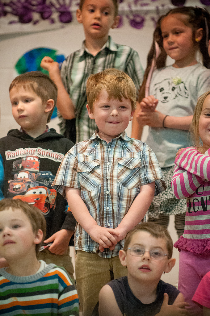 On the 16th, Parker's class (and the other kindergarten class) had a spring concert! They had been practicing for a long time and Parker was very excited for the show. He had all the lyrics memorized and certain movements for certain songs. Here are some photos of him singing and being cute. Another parent video taped the whole thing and is hopefully putting it on YouTube eventually. Their set list included "All I Really Need" by Raffi, "On The Yard", an alphabet song, "What A Wonderful World", and a song about pussywillows.